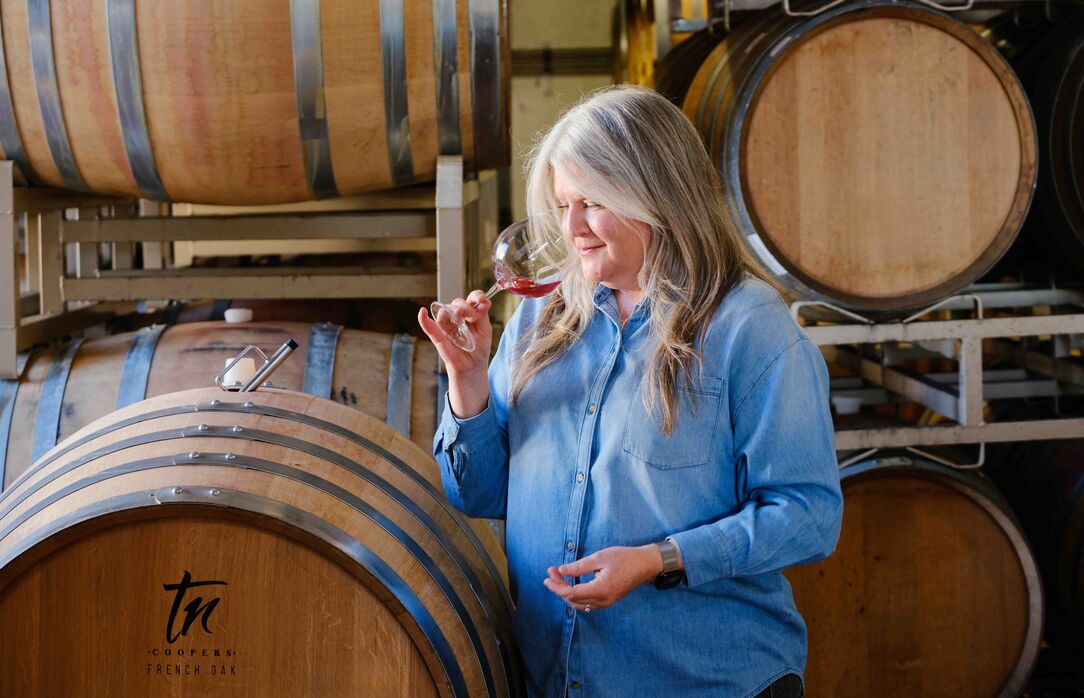 When asked about her go-to wine after a long day in the cellar, her answer reveals priorities. "I'll typically start with a coastal Chardonnay—for the purity, transparency, acidity, freshness," she says. "Then maybe a high-elevation Pinot Noir for something more serious. Both have enough character and grip to stand up to dinner, but they never overshadow the meal or the moment."