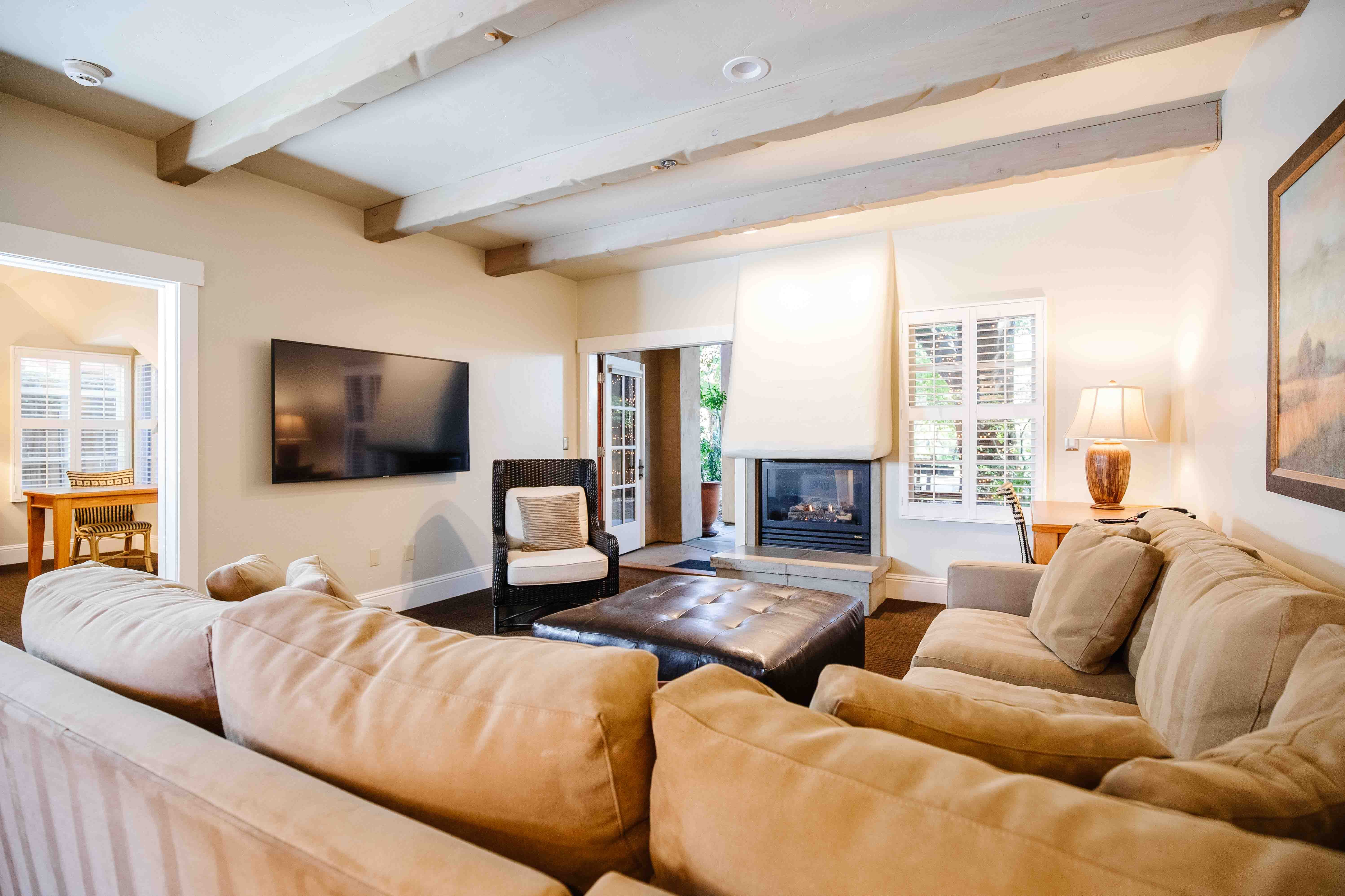Elegant and spacious, our Deluxe King Rooms adorned with warm fireplaces, feature artisanal furnishings and natural textures that celebrate Lodi's agricultural landscape. French doors open to a private terrace or patio, connecting you to our lush grounds.