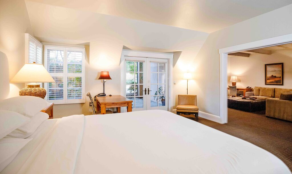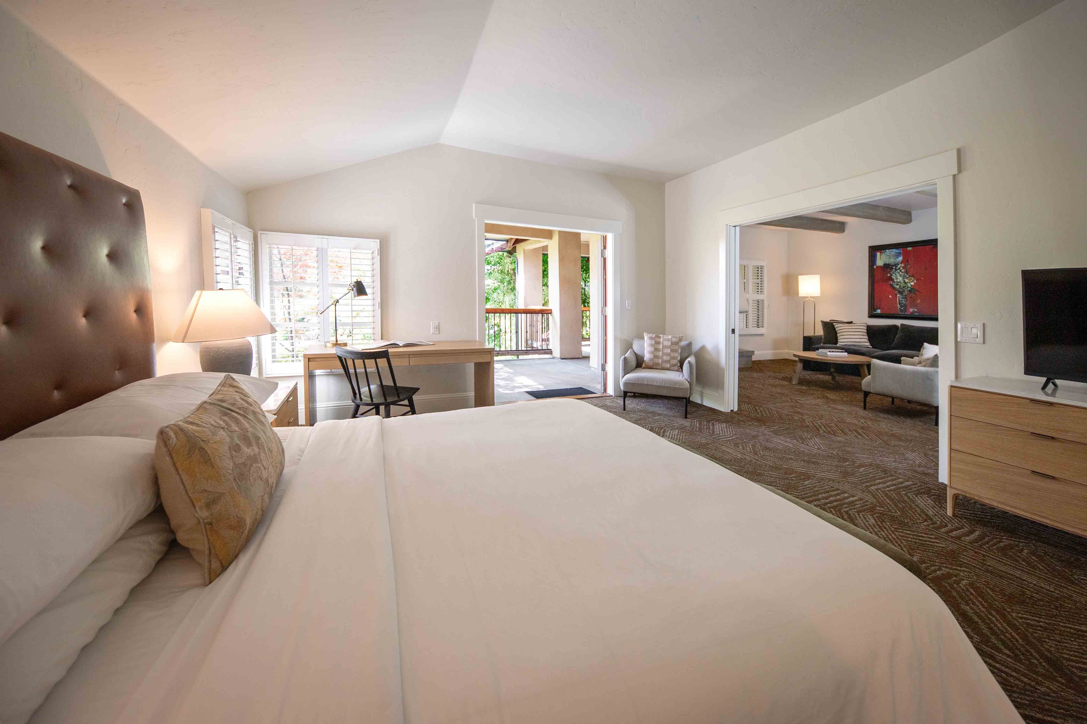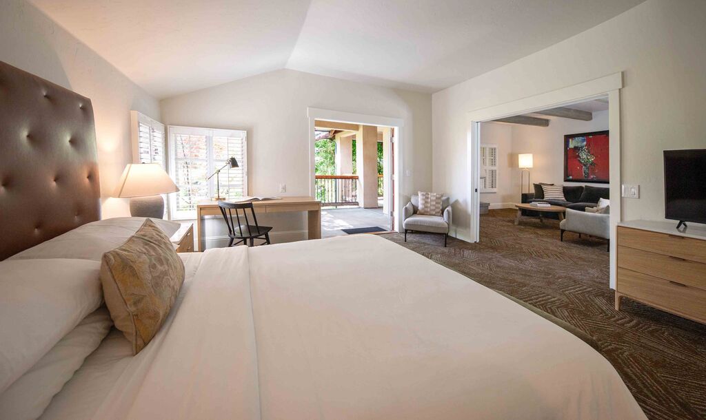 Elegant and spacious, our Deluxe King Rooms feature artisanal furnishings and natural textures that celebrate Lodi's agricultural landscape. French doors open to a private terrace or patio, connecting you to our lush grounds.