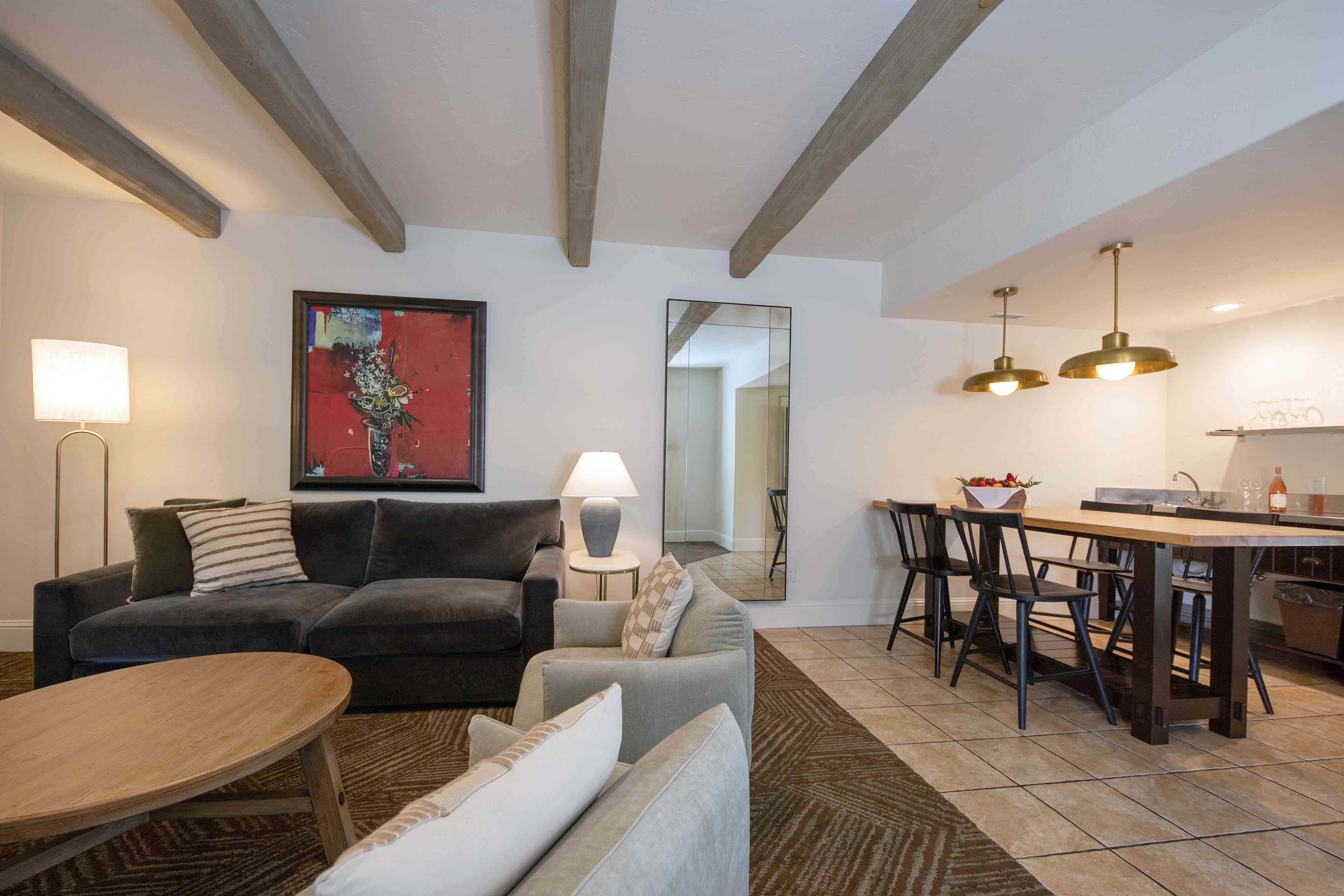 Our deeply rooted sense of place comes alive in these thoughtfully designed accommodations, where the essence of Lodi's landscape flows indoors through abundant windows and al fresco spaces. Natural light spills across light oak furnishings in a rich palette of harvest tones while custom textured fabrics evoke the rolling vineyards and golden grain fields that define our region.